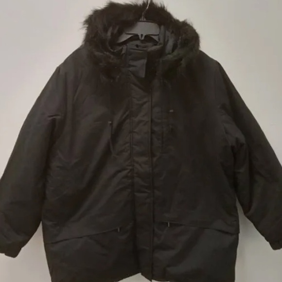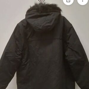Tudor Court (Size Lg) Black Jacket, detachable faux fur hood & toggle buttons