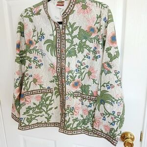 Tudor Court by Haband Floral Print Mandarin Jacket Womens Small Button Pockets