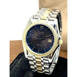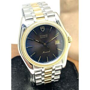 Tudor Mens Watch 15633 Monarch Vintage Swiss Brown Dial Two Tone Gold Steel 36mm