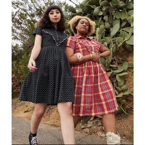 Store rock photo features a ruffle with white contrast stitching. This was based on a sample. Final dress did not have contrast as seen in photos.