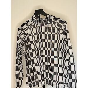 Tuesday of California Black and White Agnes Checker Mesh Mockneck 3XL