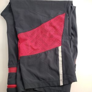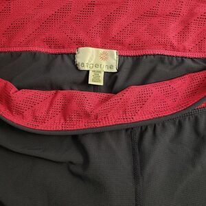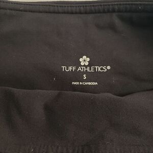 Cute black & pink Tuff Athletics workout capri leggings with 5" thick waistband 26" waist & 25" inseam