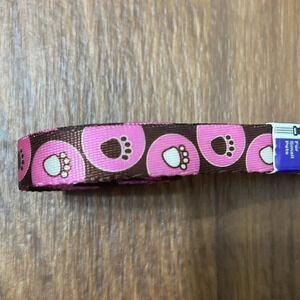 NWT Tuff Lock Brown and Pink Paw Print Small 5/8 inch 4 Foot Leash