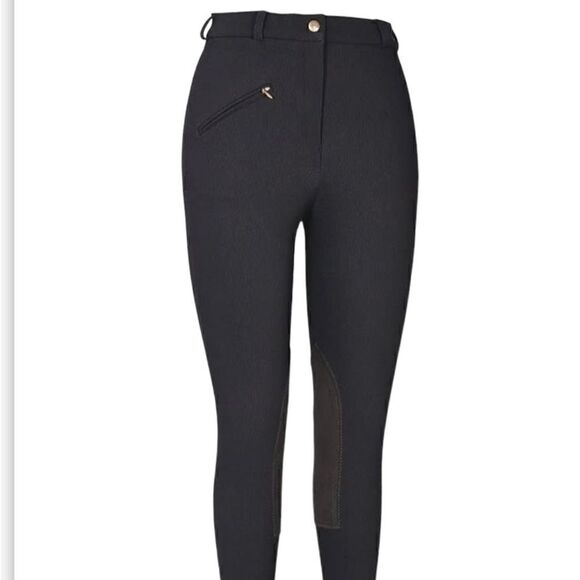 Tuff Rider Black Ribbed Front Zip Stretch Knee Breeches Riding Pants Size 26
