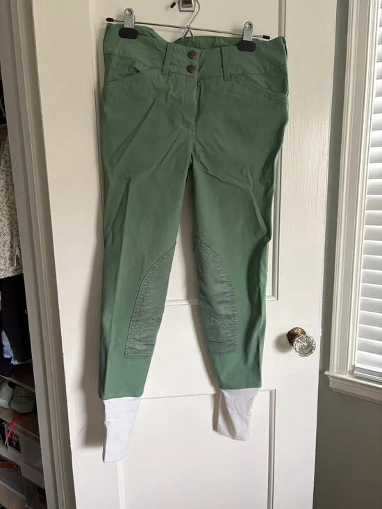 I actually don’t know that I’ve ever worn these riding breeches but they are like new in a dusty green / light green.