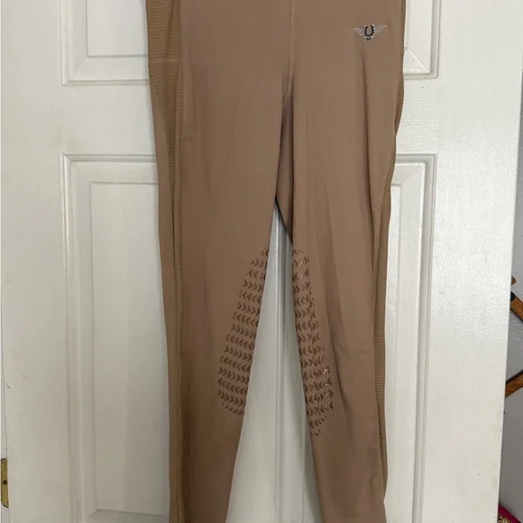 Stylish brown athletic leggings with a sleek design. Perfect for workouts.