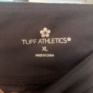 Tuff Athletics black skort with blue waist band. Two pockets on sides with one small zipper pocket. Shorts underneath are black. Draw string. Like new condition. 19 inches long.
