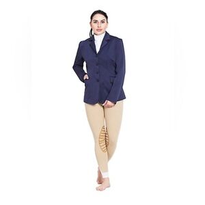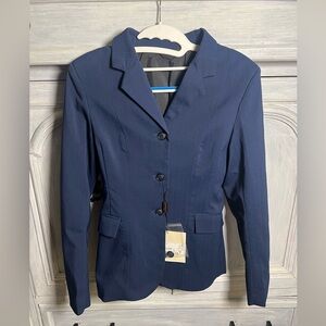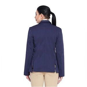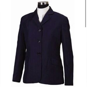 TuffRider Equestrian Performance Long Show Coat Navy Saratoga Pinstripe