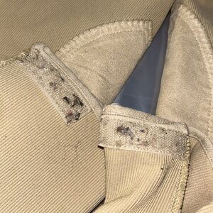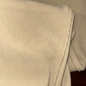 Only flaw is some fuzzies stuck in the velcro, and slight pilling on the leg in one spot