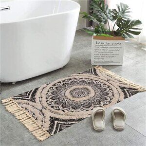 🧿Chic Look - Low-profile farmhouse rug, featuring a tight weave, accented with tonal shag tufting in a Boho Black Mandala pattern. Finished with tassel trim along the throw rug edges.