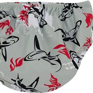 Washable and re-usable swimsuit diaper in cool prints for babies, infant and toddler boys.