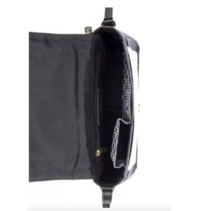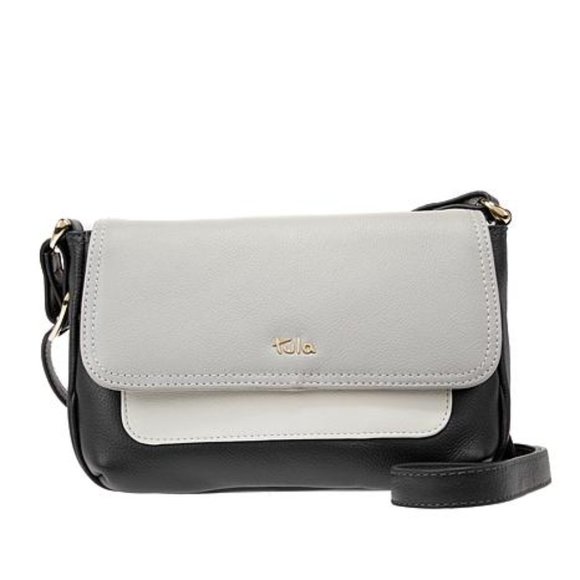 Front slip pocket (under flap) and back zip-around pocket containing credit card slots