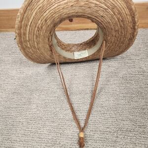 Tula Open Crown Straw Hat Faux Flowers Leather Chin Cinch Derby Beach Old Money