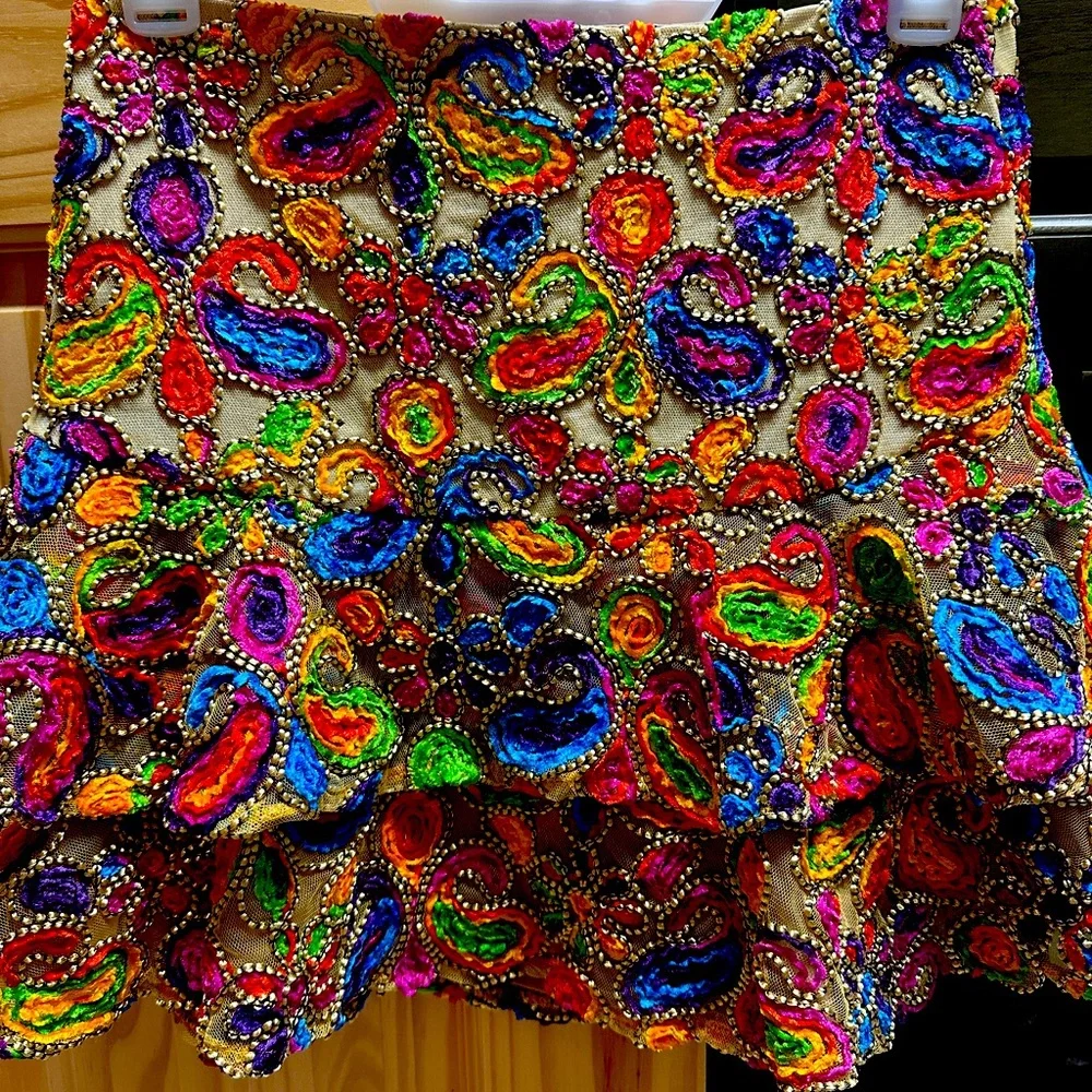 Gorgeous skirt unfortunately doesn’t fit anymore no pulling on embroidery. Get this beauty !