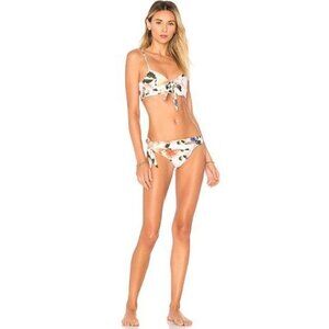 Experience the allure of summer with the Tularosa Akello Bikini Bottom. Its peach floral design, combined with a flattering waist tie, enhances your beach appearance. Designed to fit comfortably, the stretch fabric ensures freedom of movement, making it an essential addition to your swimwear collection this season.