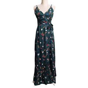 Gorgeous Green dress with sequin and embroidered flowers all over. Side tie wrap. Fully adjustable straps. Lined.