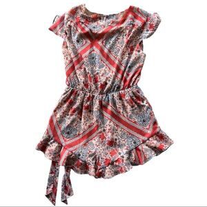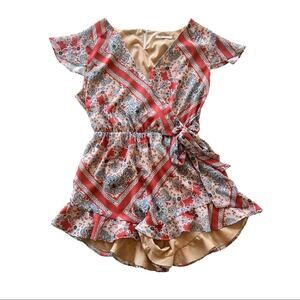 When the forecast calls for sunny skies with a full day of fun, toss on the Ashby Romper. Crafted from a woven poly featuring a romantic crossover center with belted waist and flutter accents, it's stylish yet remarkable relaxed for daytime adventures.