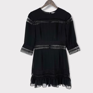 Tularosa Asher Black Embroidered Lace Ruffle Hem Mini Dress Size Medium