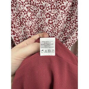 This dress is lightweight, making it perfect for the warmer seasons. It comes in a size XS and is designed as a shift style, falling short in length. The dress is not vintage and is from the brand tularosa. The dress is ideal for those who love flowers, vacations, peasant, and bohemian themes.