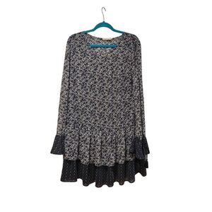 Tularosa Berkley Navy floral Long Sleeve Mini Dress w Flounce Hem, Boho | M EUC