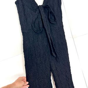 REVOLVE Tularosa Bobby Jumpsuit Womens XS Black Sleeveless Halter Neck Crinkled Keyhole stretch popcorn straight leg onesie one piece extra small bubble knit