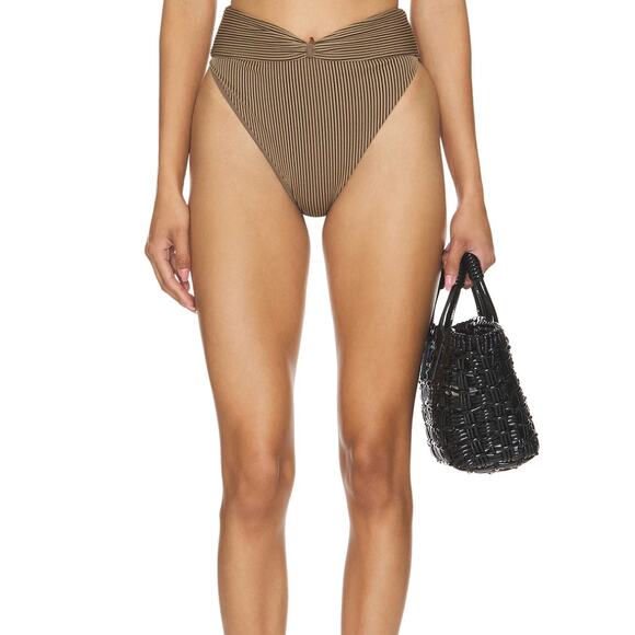 Tularosa Brown High Waist Bikini Bottom LARGE Ribbed Cheeky Lexi Revolve $88