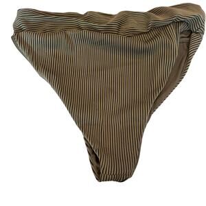 Tularosa Brown Black High Waist Bikini Bottom LARGE Ribbed Cheeky Lexi Revolve $88