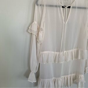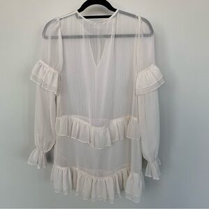 Tularosa Cream Sheer Ruffle Tiered Shirt Dress Size S