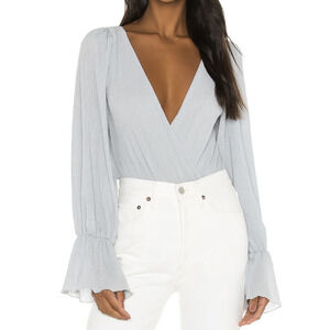 Tularosa Dusty Blue Wrap Top Bodysuit SMALL Pirate Sleeves Pleated Boho $158 NEW