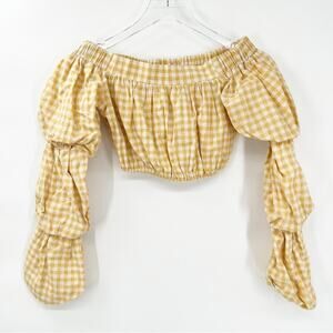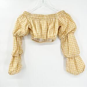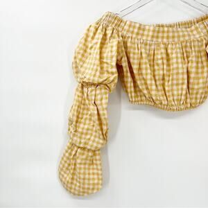 Tularosa Elaine Gingham Off the Shoulder Crop Top XS