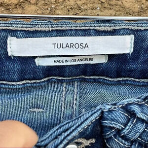 NWOT Tularosa Penelope Flare Jeans in Ankara. Braided waistband detail. Double front flap pockets with button closure. Raw cut hem. Retail $188