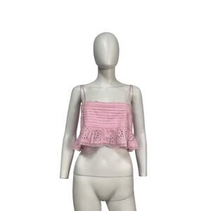Tularosa 'Genevieve' Pink Cotton Top Size XS: fully lined, back button closure, eyelet detail throughout, lace trim.