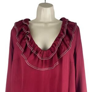 Tularosa Heather Blouse Ruffle Collar Tassel Tie Back Red Size L