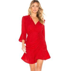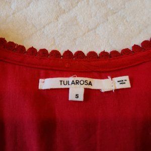 - All-cotton fabric dashed with beautiful, delicate embroidery, surplice neckline, and drawstring skirt accent