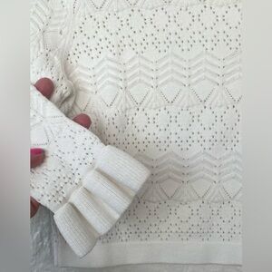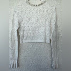 Tularosa Lana knit sweater size S. Great condition, all white, cropped, detailing on all over fabric. Soft. Ruffled neck Pointelle knit fabric with ruffled trim.