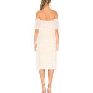 This is a beautiful ivory midi dress by Tularosa. This item is new with tags and has never been worn. It is from a smoke-free, pet-free home. This dress is perfect for any upcoming bridal events and it is currently sold out online.