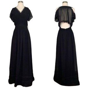 Tularosa Luca Dress Size Small Black Crochet Lace Trim V-neck Sheer Cutout New