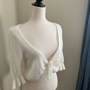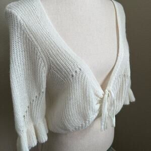 Tularosa Mathilde Cropped Mohair Blend Sweater Cream Ivory Small