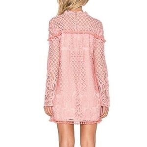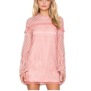 Tularosa Matilda Lace Dress In Blush. Step out in style with this elegant pink lace dress. Perfect for any occasion, this dress combines comfort and fashion effortlessly.