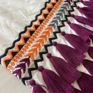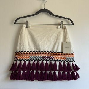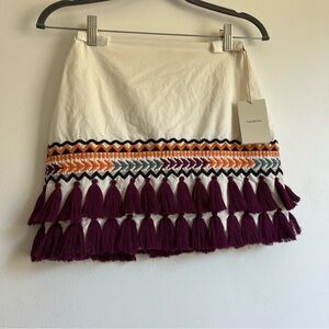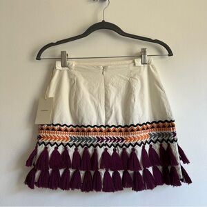 Adorable "Millie" skirt in light cream with vibrant embroidery and tassels ("Ivory"). Perfect for the beach, a festival or date night with cowboy boots:)