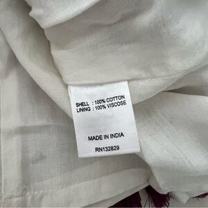 Mini length. Closer fit around the waist and hips. Contrast embroidered trim detail with tassel detail sat hem. Concealed back zip closure with baby hook & eye (at center seam). Lined, no sheerness. Lightweight, non-stretch fabric with embroidery and embellishments. Shell 100% cotton - lining 100% viscose. Made in India. Hand wash cold (tumble dry low).