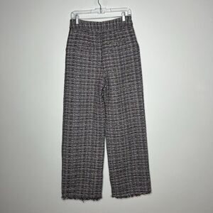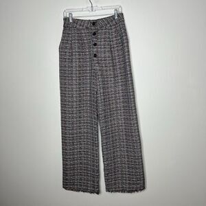 Tularosa Pants Womens Medium Tweed Colorful Wide Leg Fringe Hem Lined High Rise Revolve