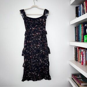 Tularosa REVOLVE Lily Floral gingham MIDI Ruffle Tiered Off Shoulder Dress XS