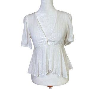 Tularosa REVOLVE Otis Top Peplum V-Neck Fairy Peasant Flowy White/Gold Y2K Sz S