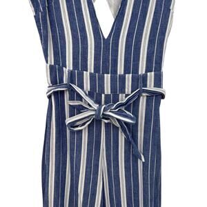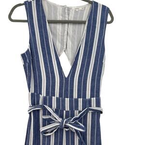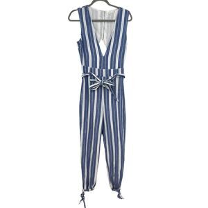 Tularosa Reese Jumpsuit Cut Out Belted Indio Stripe Blue White Size Medium