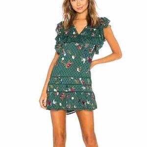 Tularosa Revolve Lindsay Mini Embroidered Floral Dress Emerald Size XS