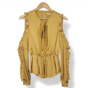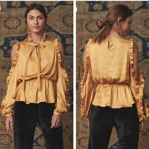Tularosa Revolve Shilo Satin Open Sleeve Ruffle Blouse in Marigold Size XS