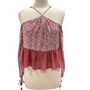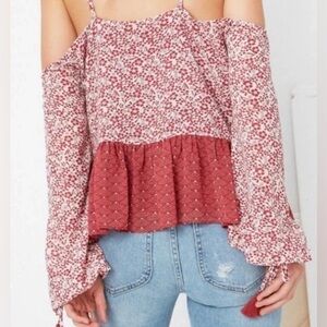 Tularosa Revolve Syrah Ruffled Crop Off The Shoulder Top Dusted Berry SZ XS