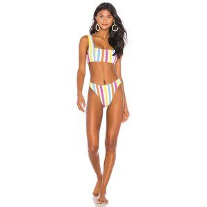 tags: revolve, bikini, swim, swimwear, swim separates, bikini bottoms, textured, stripes, striped, multicolor, high rise, cheeky, vacation, spring break