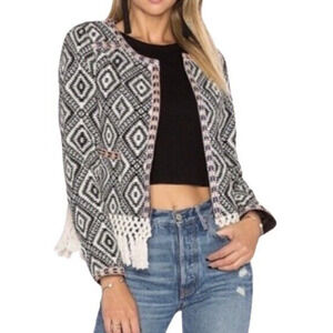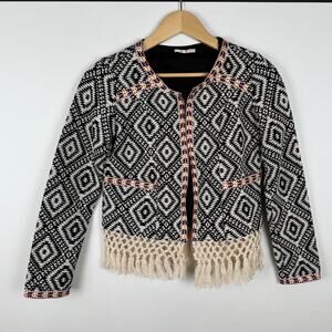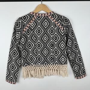 Tularosa Santa Fe Fringe Jacket Women's Size XS Black White Open Front Boho Crochet
